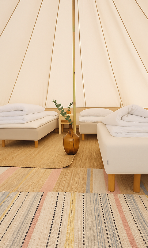 Velg mellom glamping i vårt Okavango-telt med plass til 5. Legg til Kalahari-teltet om nødvendig for ytterligere 5 senger. Du kan bestille hele gården som har plass til opptil 10 gjester + telt, med plass til 18. Perfekt for en privat ferie, et retreat eller et arrangement.